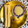 La placa de selenita limpia energéticamente la pulsera, renovando tu energía y abriendo el camino a nuevas posibilidades.