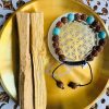 La placa de selenita limpia energéticamente la pulsera, renovando tu escudo y tu claridad.