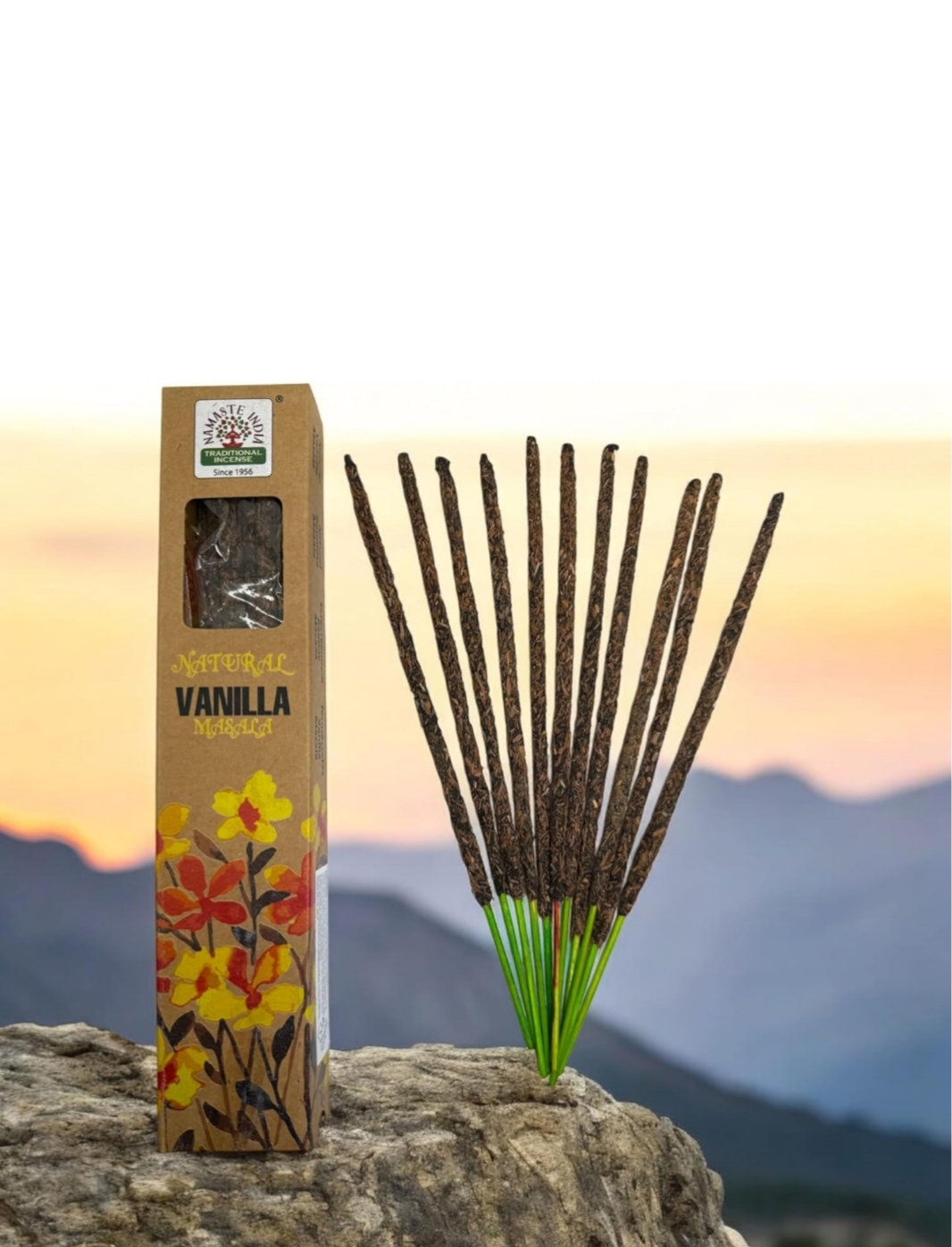 La vainilla tiene la magia de ablandar el alma. Su aroma suave, envolvente y naturalmente dulce despierta ternura, calma y alegría interior. Hecho a mano con extractos de vainilla orgánica y resinas naturales, libre de químicos o aditivos, este incienso Namasté India irradia bienestar y magnetismo.